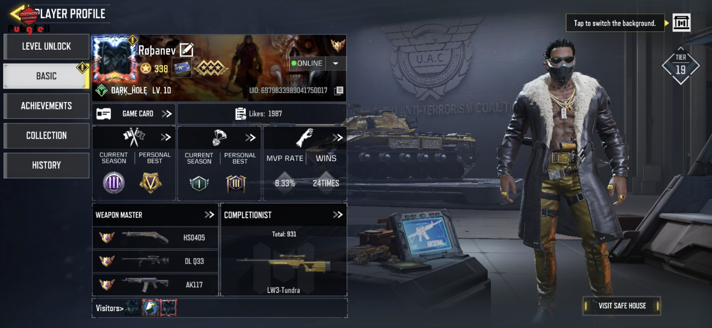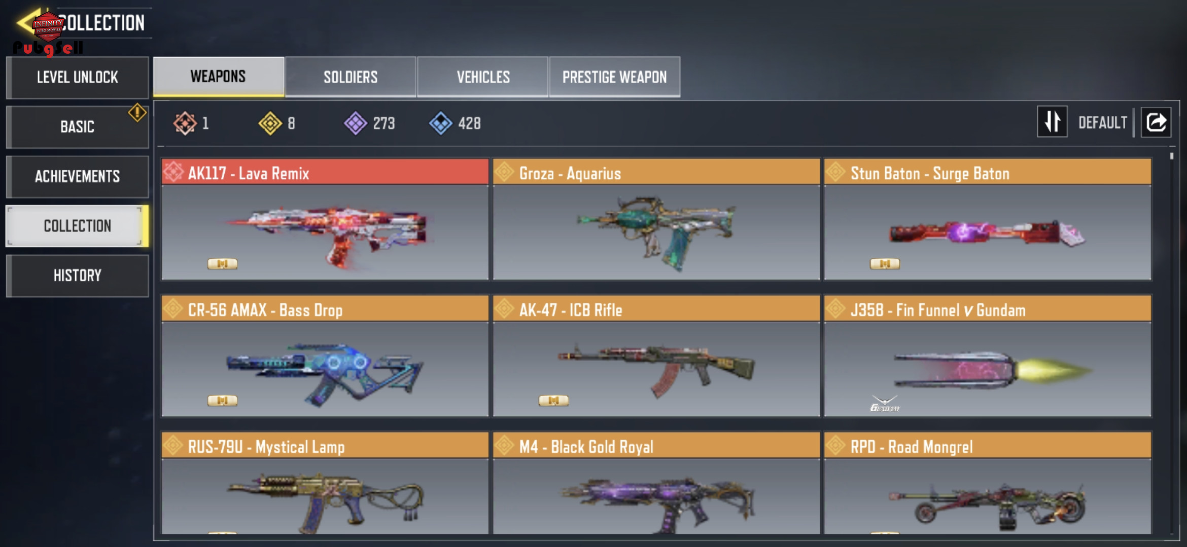 اکانت ناب ، سه تا کاراکتر گردونه، grozaلجند ،جت پک لجند، گان اپیک های خفن، دنس های خفن،8تا گان گلد،7تا بتل پس