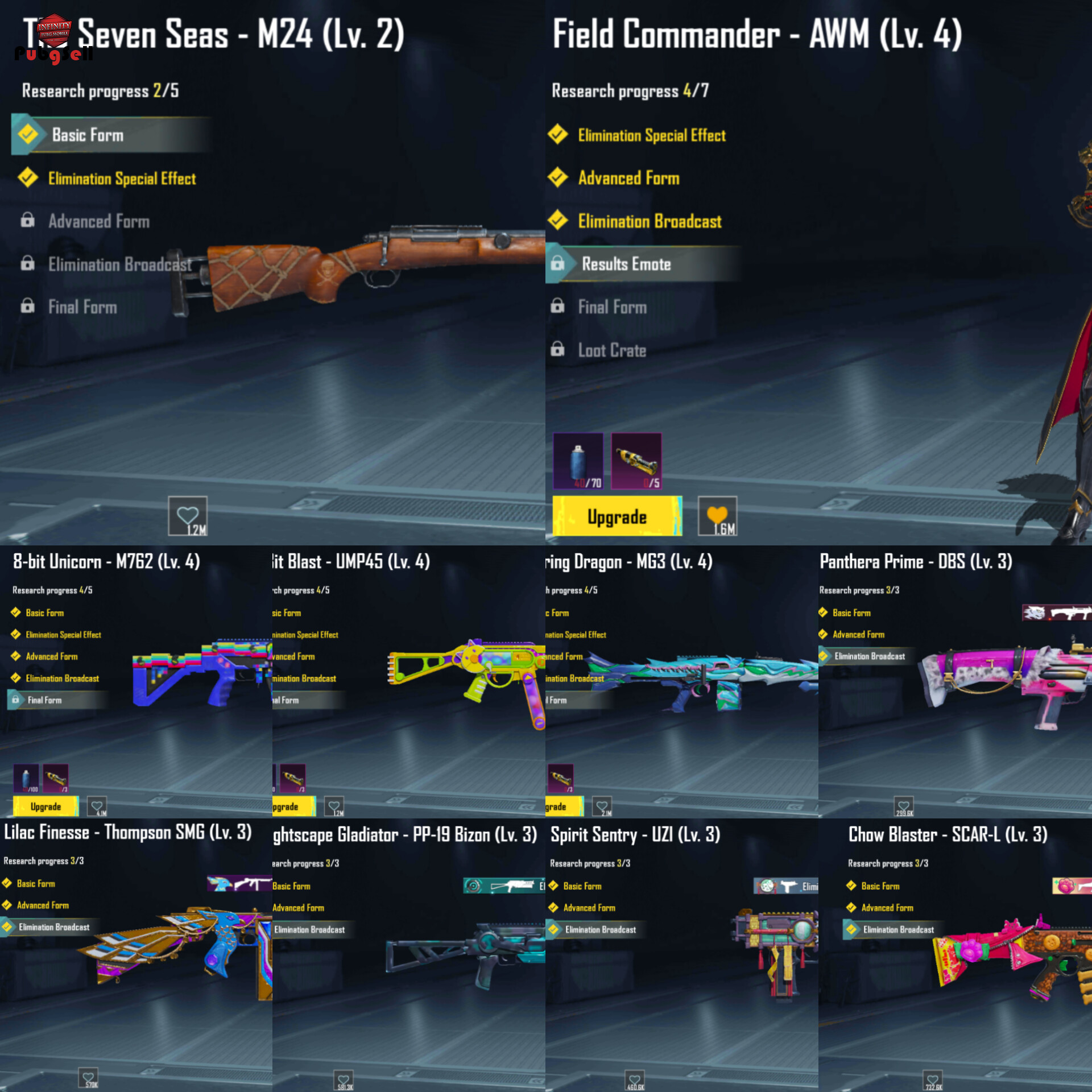 لباس آپگریدی لول دو به همراه یه تیک جم کاملش 26گان آپگریدی که 9تا کیل مسیجه تو عکس مشخصه تعدادی هم لول دو سه تا ماشین آپگریدی به همراه هشتا موتور برای آپگرید کردن و ....