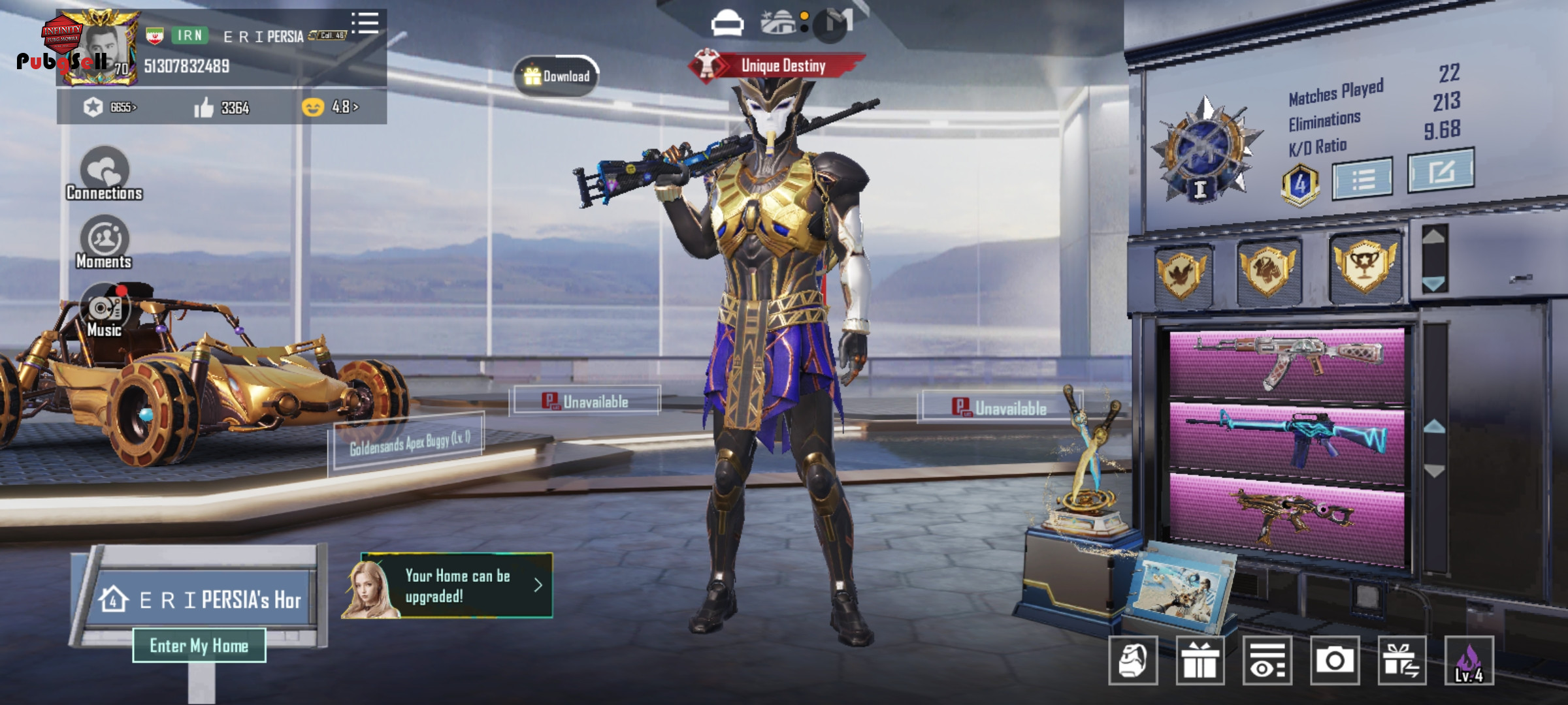 ایکس سویت فرعون لول 2 ایکس سویت انوخرا لول 1 کیف متیک قاب ایکس سویت دنس گلایدر و چتراشون گان ها: Scarl kill massage Honey badger level 1 Ump level 3 Pan kill massage Ghame level 1 Akm level 2 M24 level 3 M24 level 1 Victor level 2 M16 A4 level 1 M700 level 3 Dp level 3 Uzi level 3 باگی اپگریدی گان ارپی و مینی متریال کلی ایتم دیگه لینک 3 و جیمیل یکیه دیگه فرعون برنمیگردونه این اخرین فرصت برای داشتن یک اکانت خوب با قیمت مناسبه