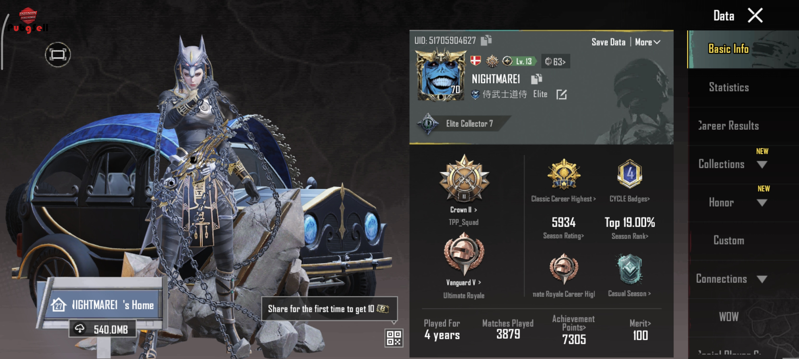 نام اکانت پابجی موبایل: NIGHTMARE1ē