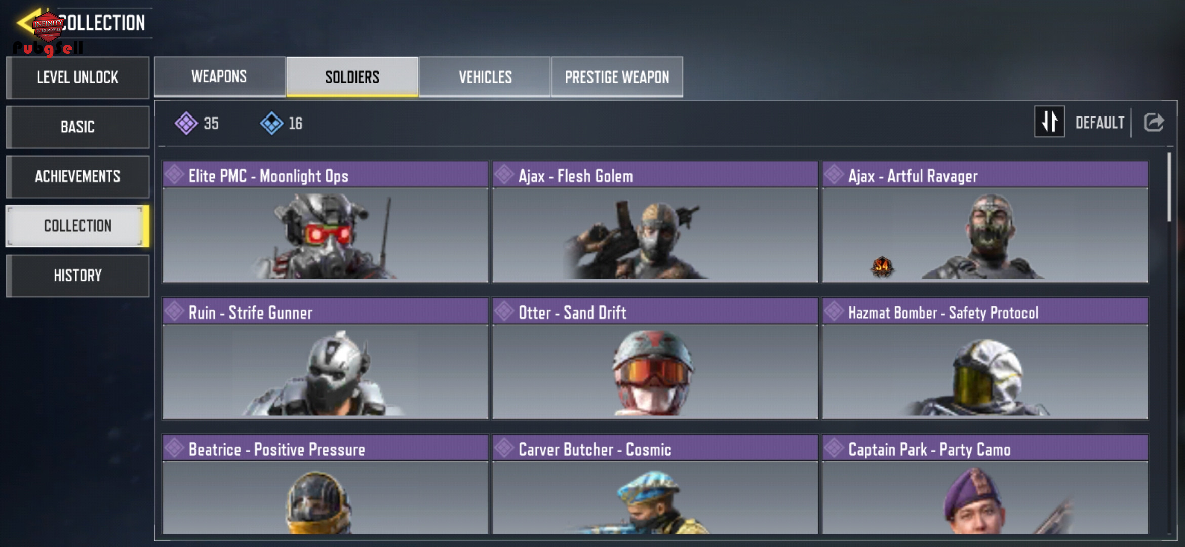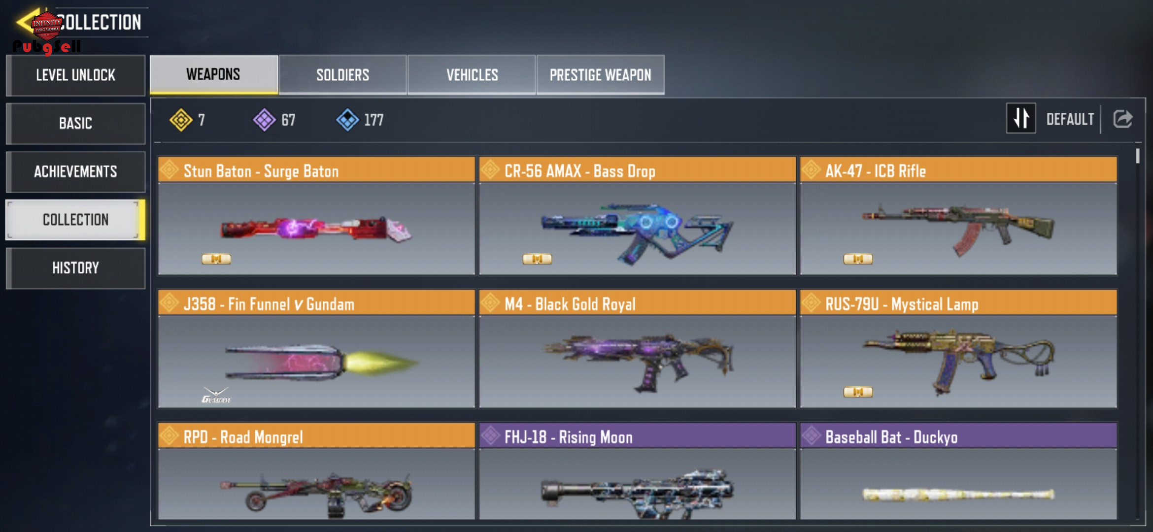 اکانت خوبیه خوش شانسه قدیمه کلی اسکین قدیمی کمیاب داره گان متیک رایگانم فک کنم نزدیک 100 تاش مونده کلی جت پک و گان قدیمی داره مبارکه صاحبش دیگه پلی نمیدم میتونید چک کنید از طریق یو آی دی همه چی مشخصه دو بارم بتل پس خورده هفت تا لجند مفت گذاشتم