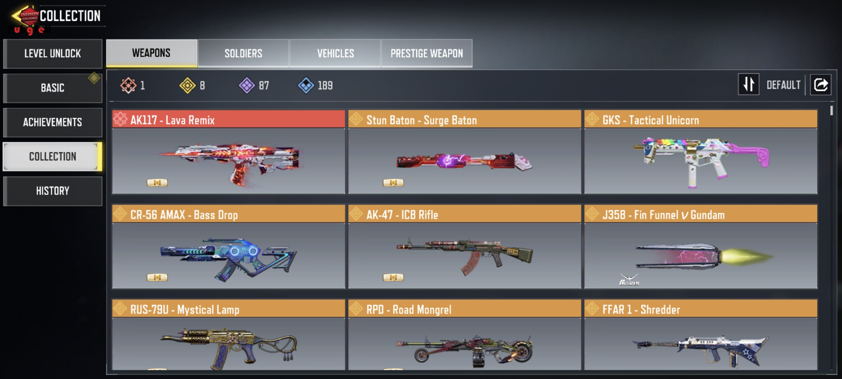 🔶تک سیو اکتیویژن قابل چنج 🔰گان متیک AK117 🔰8 تا گان لجند 🔰چند تا اسکین گردونه 🔰2-3 بتل پس 🔰 چندتا اسکین گردونه 🔰5 تا بتل پس قیمت مناسب برای پلی یو ایدی: 7443290327169564673