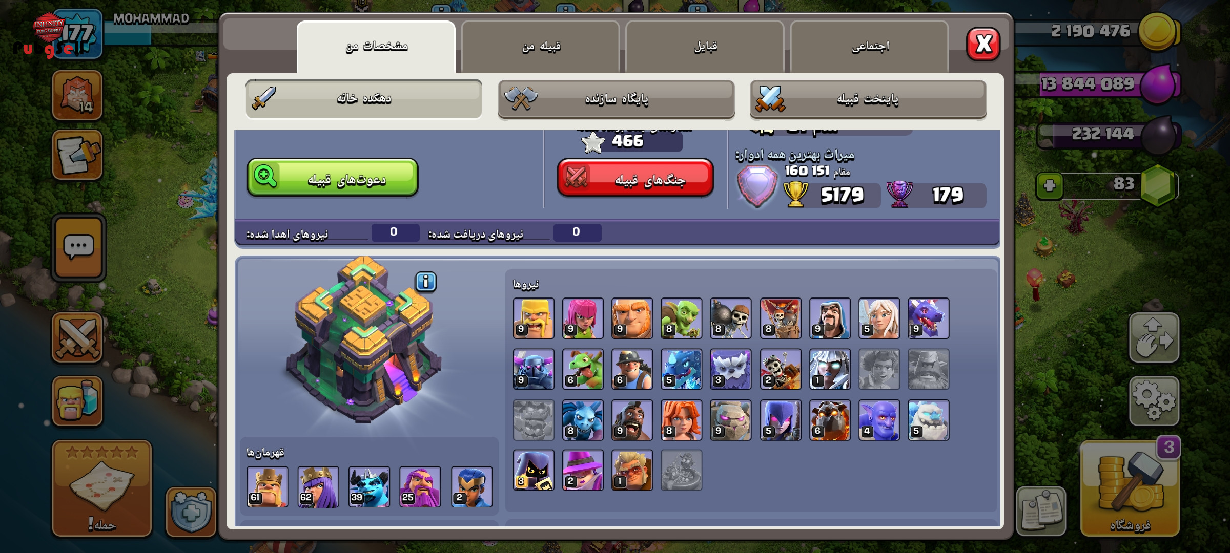 اکانت 14 تقریباً مکس با کلن لول 19 بهترین قیمت گذاشتم فروش بره مفت