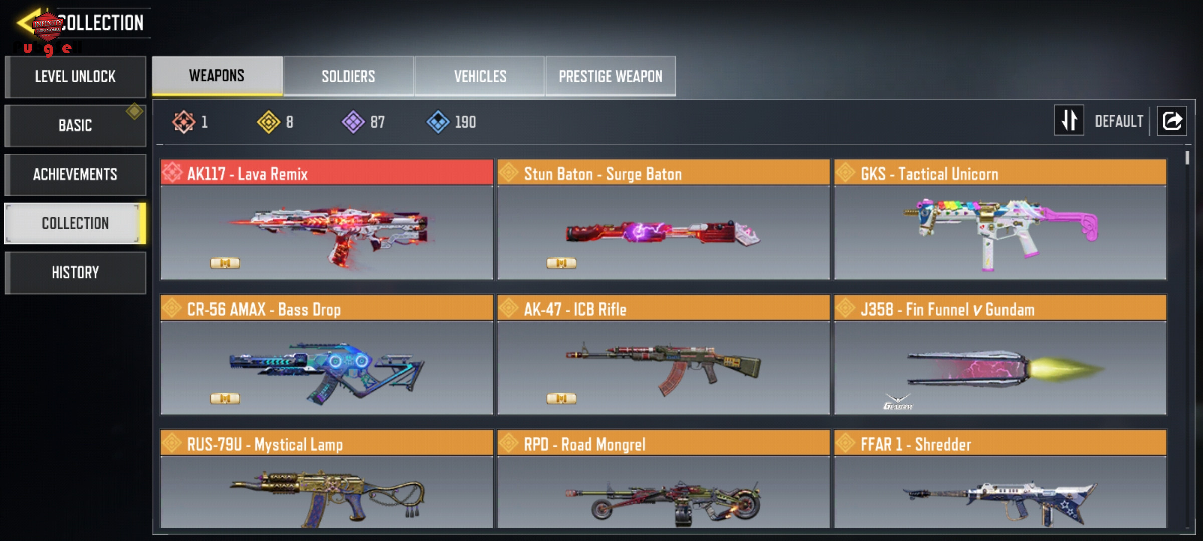 توضیحات درباره اسکین های ویژه: 1 متیک 8 تا گان لجند دایموند و گلد داره زیاد