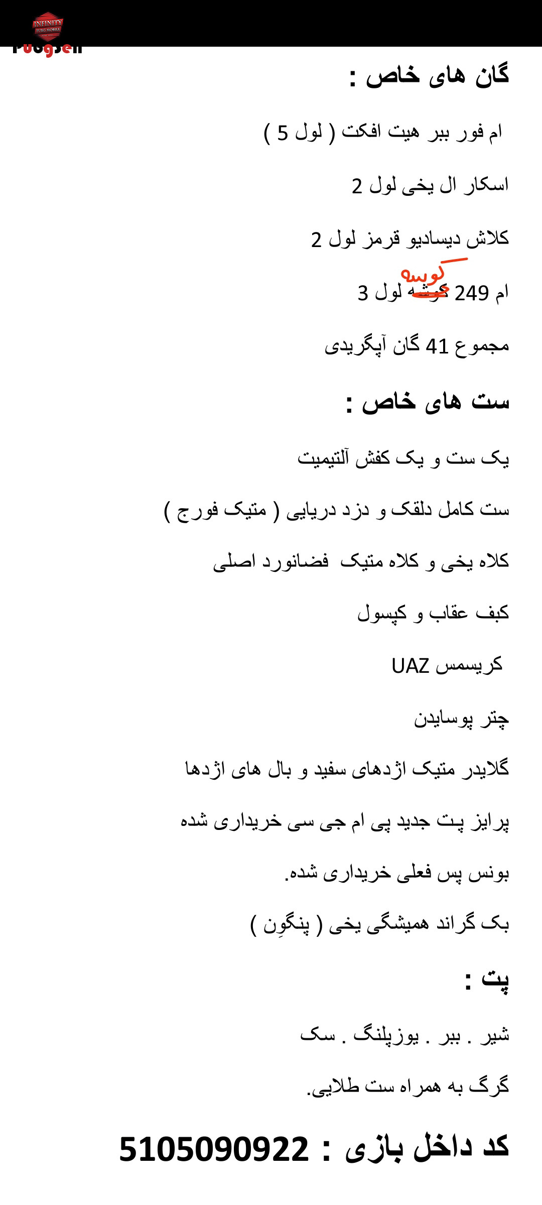 اکانت خوبیه . فقط نزدیک 20 میلیون براش هزینه شده.