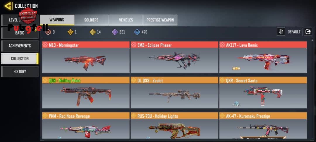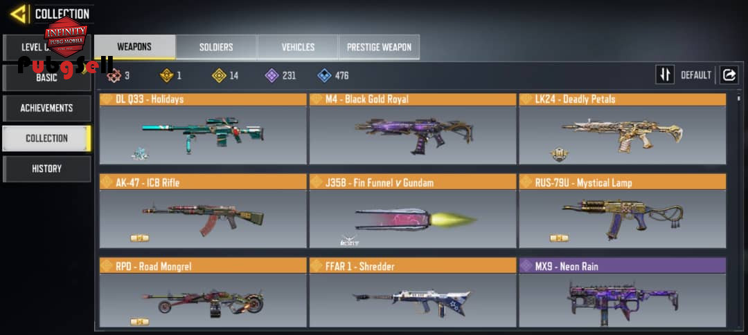 اکانت دارای نید لجند جت پک لجند اسموک لجند گانای متیک گان های لجند چارم و کالین کارد لجند دنس های فراوان بتل پس های برگشتی 13بتل پس