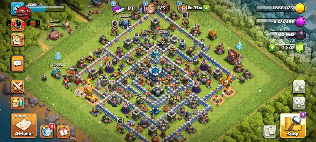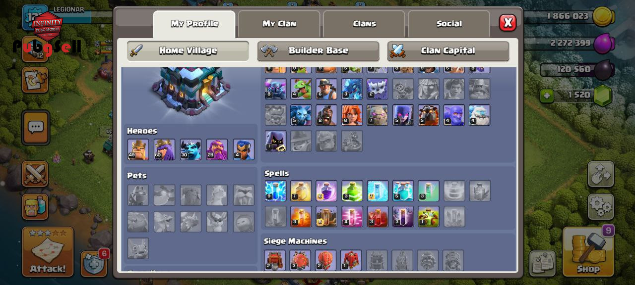 سلام دوستان اکانت چنج میشه براتون از اکانت هم بگم براتون تاون 13 هستش و تازه 13 کردم یه جورایی دوازده مکس بود فقط یکم دیواراش موند و گولد ماین و اکسیر ماین هاش ایناش مونده بود درکل همه چیز تو عکس معلومه و لول هم 121 هستش