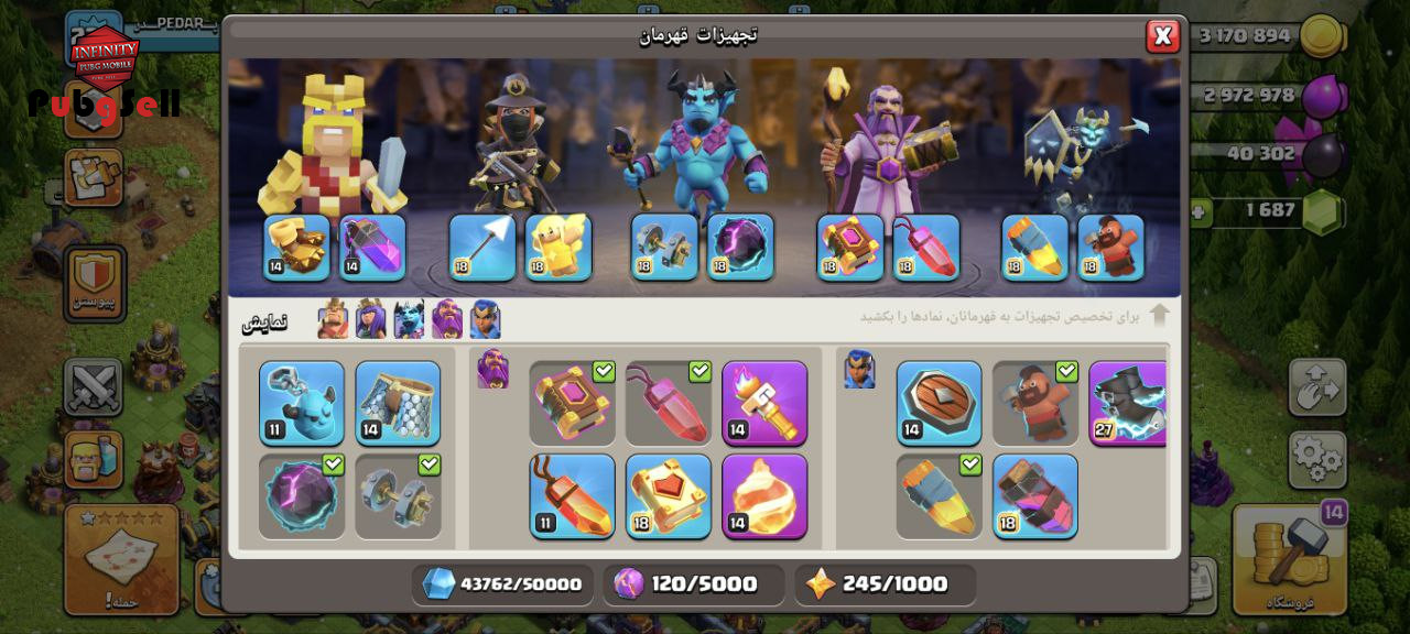 اکانت خیلی خوب و قدیمی هست از قدیم دارمش.. وقت بازی کردن ندارم.. چند وقت بازیش کنی مکس مکس میشه قیمتشم مفت گزاشتم.. 3 تا اسکین هیرو داره. 3.4 تا منظره 1700 جم و چکش و کتاب و..