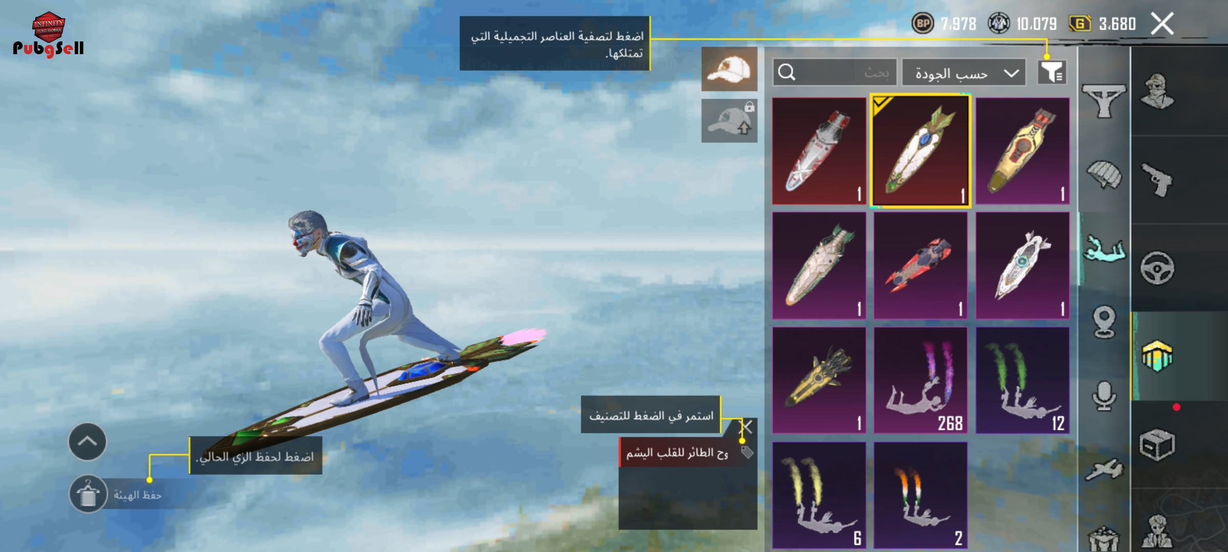 توضیحات درباره اسکین های ویژه: 5لباس 3کلاه غیر ارپی لباسX وهلمت یخی و بک بک متحرک