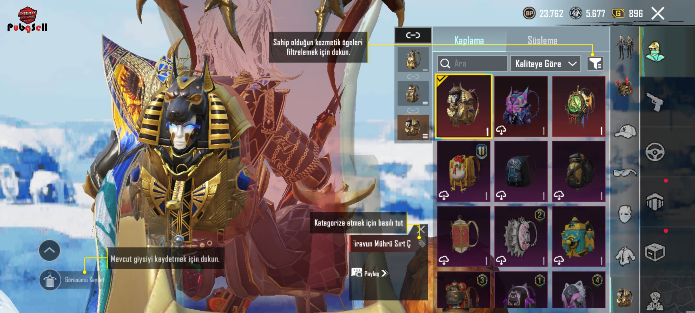 اکانت فول ✅ ماشین پاگانی هایورا✅ کیف فرعون،چتر فرعون،ست ایکس سویت زن فرعون،گربه زن فرعون،✅ 2 عدد ایکس سویت✅یدونه لول 2✅ 3 عدد پت داره✅ 17 عدد گان اپگردی✅ 1 عدد جم متیک فورج✅ 3 عدد مینی متریال✅ 1 عدد متریال✅