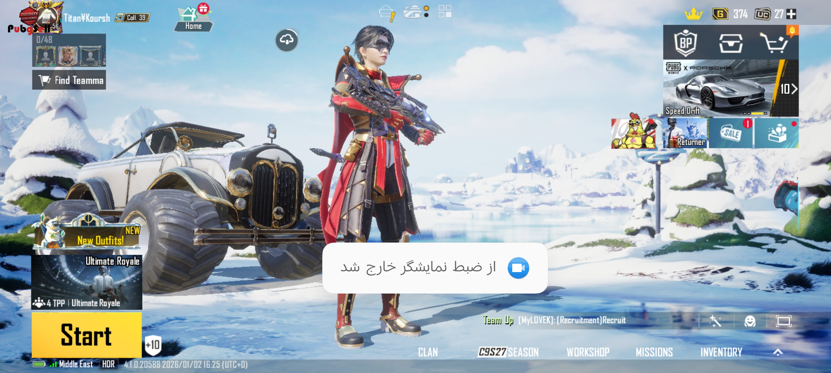 نام اکانت پابجی موبایل:Titan¥Koursh