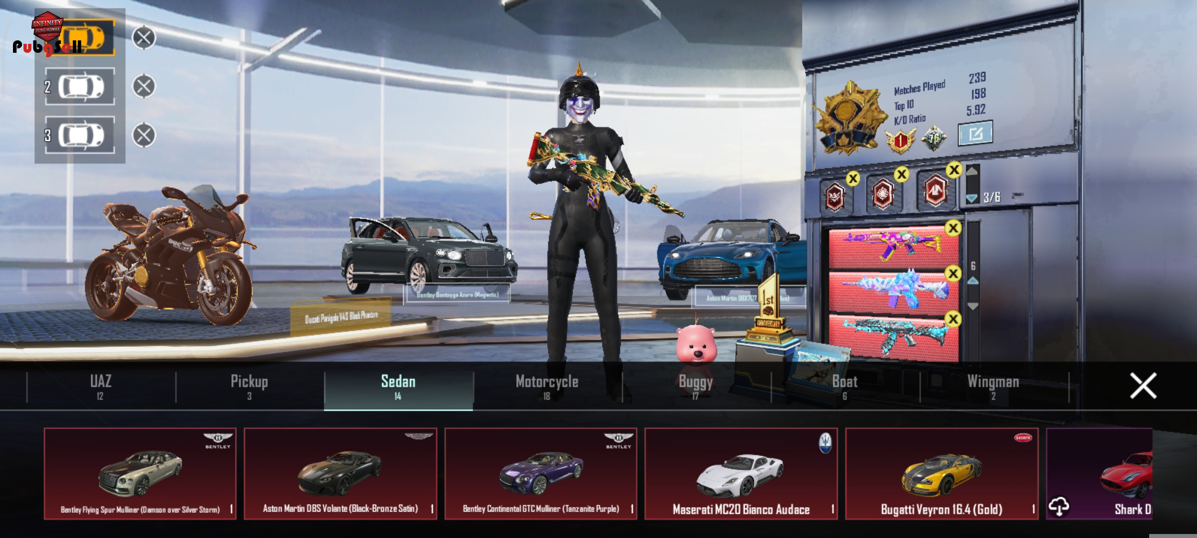 Collection lvL =77 🥼Collection Metic/ 220 🥼metic fashion/ 180 ⚜5 X_Suit 🤩Ignis X-Suit (5-Star)🤩 🤩Poseidon X-Suit (4-Star)🤩 🤩Avalanche X-Suit (4-Star)🤩 🤩Silvanus X-Suit (3-Star)🤩 🌟Galadria X-Suit (2-Star)🌟 🔥+7 تا سنگ نقره ای+122 سنگ طلایی : سیلوانوس فقط 100 سنگ طلایی لازم داره برای لول کیل 👍 🏞LOOBY METIC / 8 🎒Backpack metic / 10 🧥ULTIMATE : 10🤩🤩 🧥Mummy set : all sets Items 🤩🤩🤩🌟🤩🌟🌟🌟🌟🧥🧥🌟🌟🤩🤩🌟🤩🌟🌟🤩🤩🌟🤩 🔫Gun : 75 کیل شمار امفور و ایکی بازه M4 sealed nether (lv8 Max)🤩 AKM admiral (lv8 Max)🤩 AKM glacier (lv7 Max)🌟 M4 Glacier (lv7 Max)🤩 M762 stray (lv7)🤩 Ump Anniversary(lv7 Max)🤩 M4 roaring immolation (lvl 6)🤩 M24 lady (lv5 max)🔫 Ump Glacier (Lv5) on hit🔫 AUG abyssal (lv5) on hit🤩 MG3 sky (lv5) on hit🤩 P90 cybercat (lv5) on hit🌟 Scarl nemesis (lv5) on hit🔫 Ace32 keraken (lv5) on hit🌟 Famas origin (lv5) on hit Sk12 atomic (lv5) on hit🤩 DBS Sandsinger (Lv.5) on hit Uzi glacier (lv5) on hit🤩 Qbz fatal (lv4) Thompson Candy (lv4)🤩 Vector golden (lv4)🤩 Pp19 Blazing (lv4)🤩 UZI shimmer (lv4) S1897 Twilight (lv4) Awm avenger (lv4)🤩 M24 pharaoh (lv4)🤩 Kar98 moonlight (lv4)🔫 AMR crimson (lv4)🤩 Akm seven sea (lv4)🤩 Dp28 dragon (lv4) M416 techno (lv4)🔫 Scar l crystal (lv4) M249 Party (lv4))🤩 Sks snow (lv4)🤩 Groza sukuna (lv4)🤩 M16A skeletal (lv4)🌟 Pan accolade (lv4) Mk14 galaxy (lv4)🤩 Mg3 dragon (lv4)🤩 Honey vivid (lv4) Knife tundra (lv3) kill massage 🚖Car: Bentley flying spur1car🤩 Bentley continental 1car🤩 Bentley Bentayge 1car🤩 Aston martin DBX707 1car🤩 Aston martin Volante 1car🤩 Bugatti veyron 1car🚗 Maserati MC20 1car🤩 🏍 Ducati motor black 🏍 Ducati motor Red