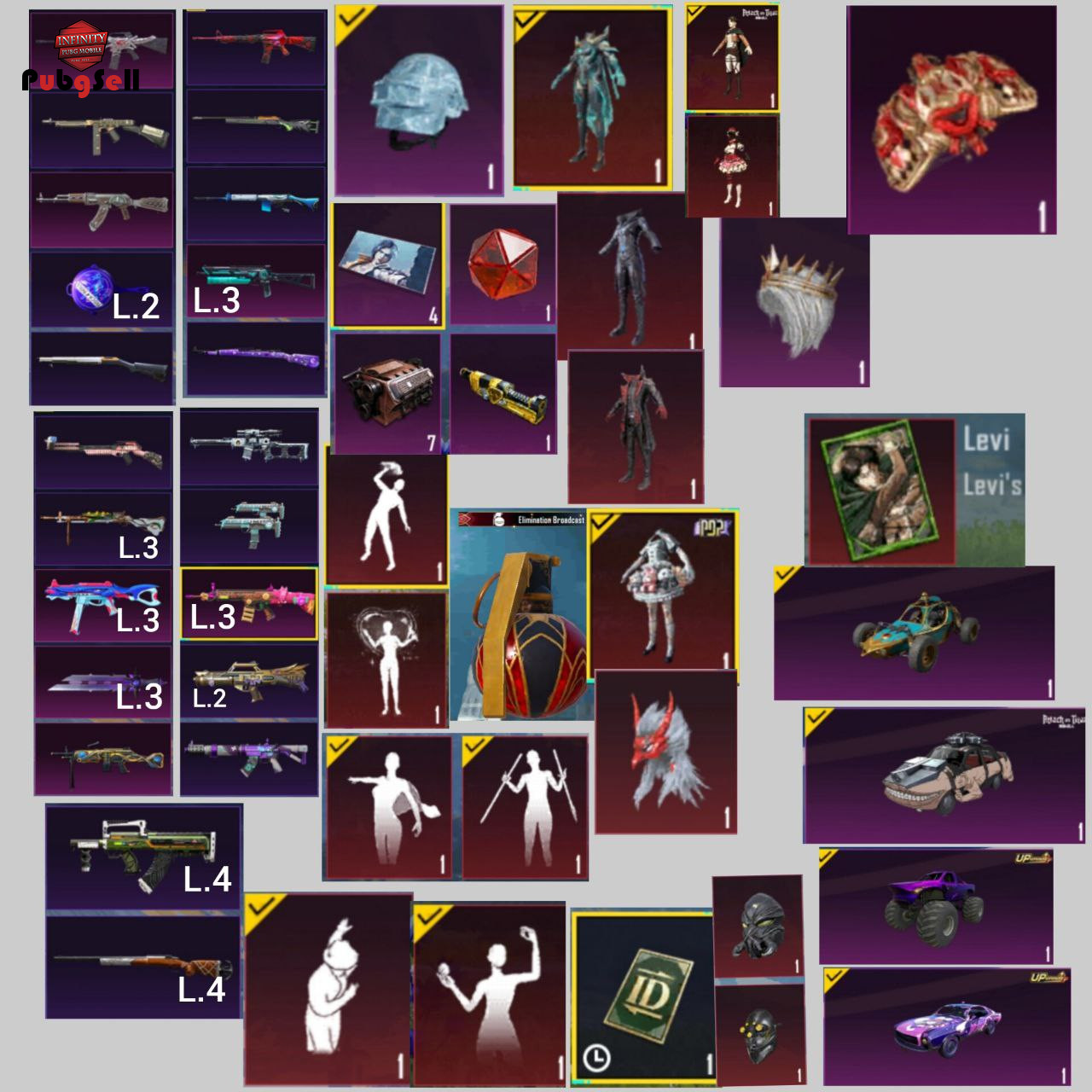 22گان آپگریدی SCAR-L L.3 کیل مسیج NS2000 L.2 PP-19 L.3 کیل مسیج DP-28 L.3 UMP45 L.3 کیل مسیج MACHETEL L.3 کیل مسیج PAN L.2 GROZA L.4 کیل مسیج M24 L.4 کیل مسیج 13گان لول یک دیگه تو عکس و فیلم هست 2ماشین آپگریدی 56ست متیک (ست خون آشام) چند ست متیک دیگه که تو فیلم و عکس هست_400ست لجند_433ست اپیک_33دنس متیک که برای که چندتا برای لباس آپگریدی و ست های دیگه هست یک بار پرایز پس شده(اتک آن تایتان)_ یک بار هم بونوس پس 3کاراکتر سارا_اندی_ویکتور_یک پت سگ توضیحات اضافه: اکانت قدیمی و خوبیه بقیه 7425تا اچیومنت پوینت داره_468یوسی داره_آیتم ها توی عکس و فیلم هست