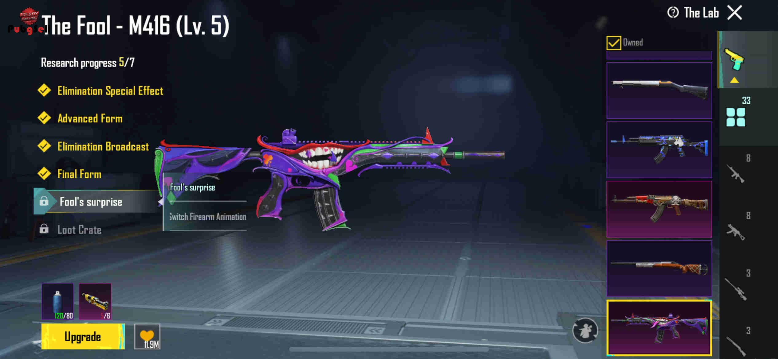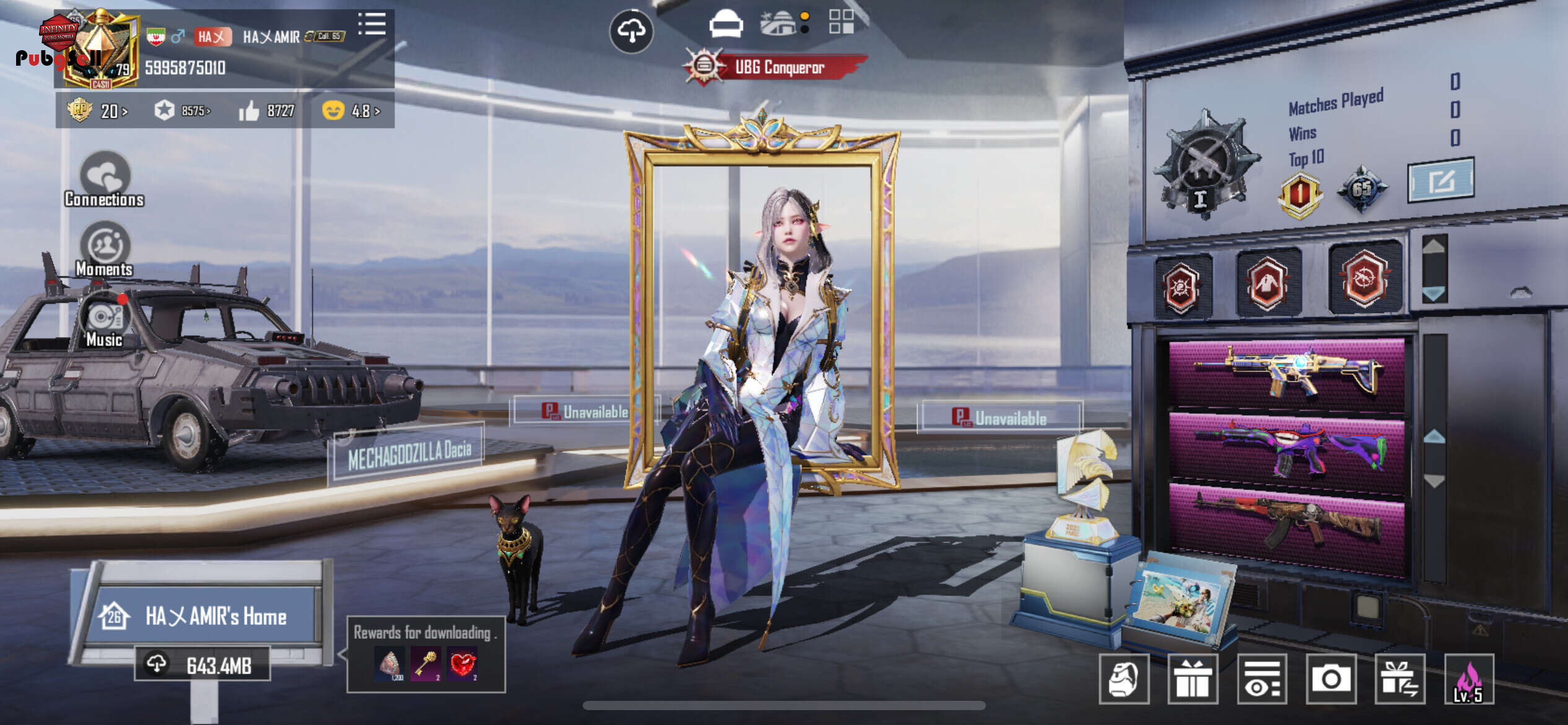 125. آیتم متیک سه آیتم التیمت دو ست التیمت یک هد التیمت یک ایکسویت لول دو پت گربه گلایدر و کیف فرعون به همراه یک کیف متیک دیگه امفور متیک 34 گان اپگیردی The Fool-m416 (l.v5) The seven seas-m24(lv.4) The seven seas-AKM(lv.4) Hextech Crystal-SCAR-L(lv.4) Shimmer Power -UZI(lv.4) 8-Bit Blast-UMP45(lv.4)
