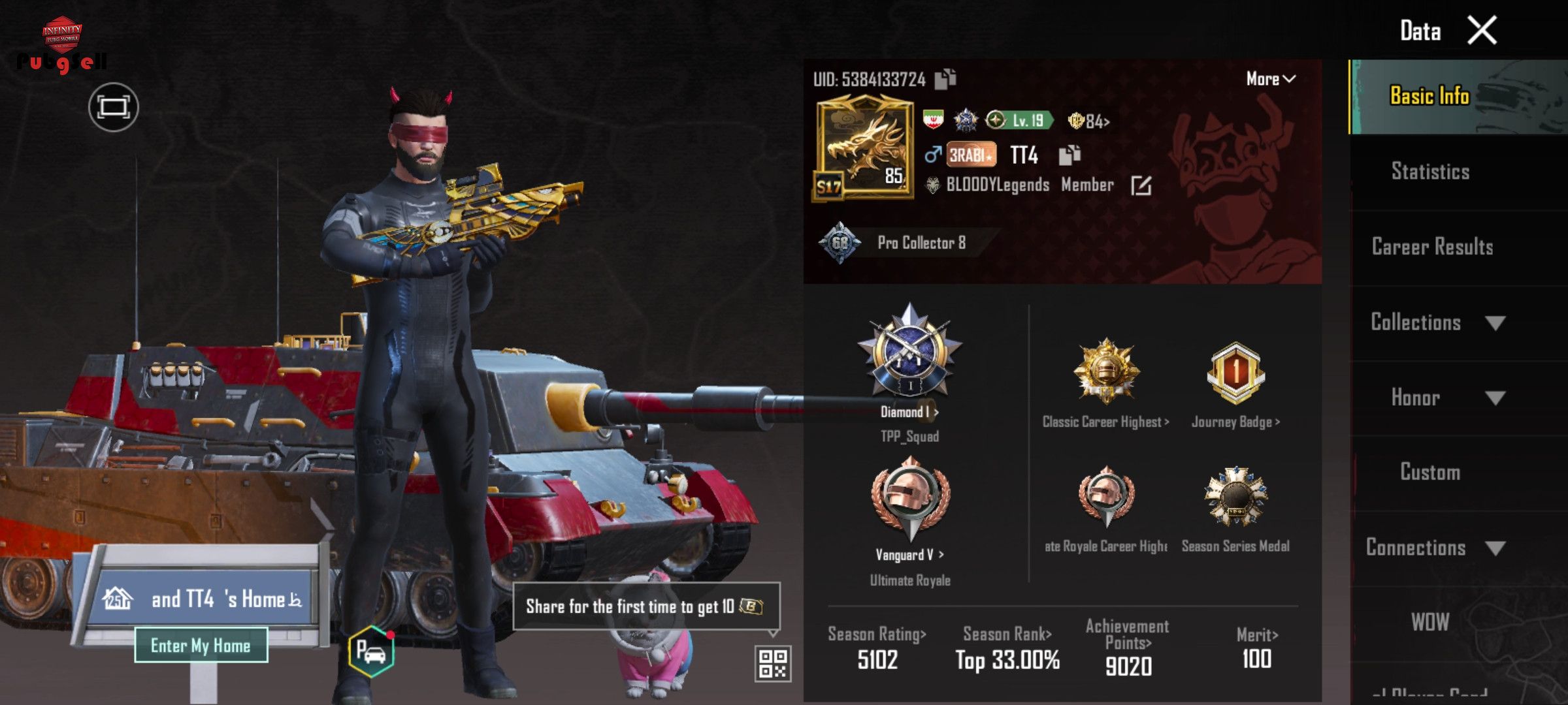این اکانت از سیزن s5 ساخته شده / از سیزن s7 تا الان الایت داره که چند تا میس داده/ 2عدد لابی متیک /کالکشن وسط 68 هستش/ 148 عدد ایتم متیک داره/ 33 عدد گان اپگریدی/ 10 تاش کیل مسیجه/ فیس سیزن 4/ مو سیزن 4/ ریش سیزن 7/ 1 عدد هلمت متیک/ هلمت یخی/ 3 عدد بک پک متیک/ ست متیک غیر ارپی زیاد داره/ فول کارکتر به جز 2 تا اندی و کارلو رو داره با چند تا دیگه/ تحویل فوری فوری !! 660 یوسی هم رو اکانته.