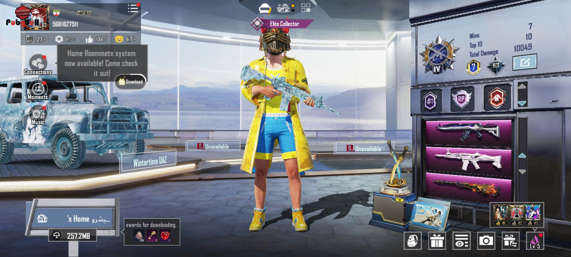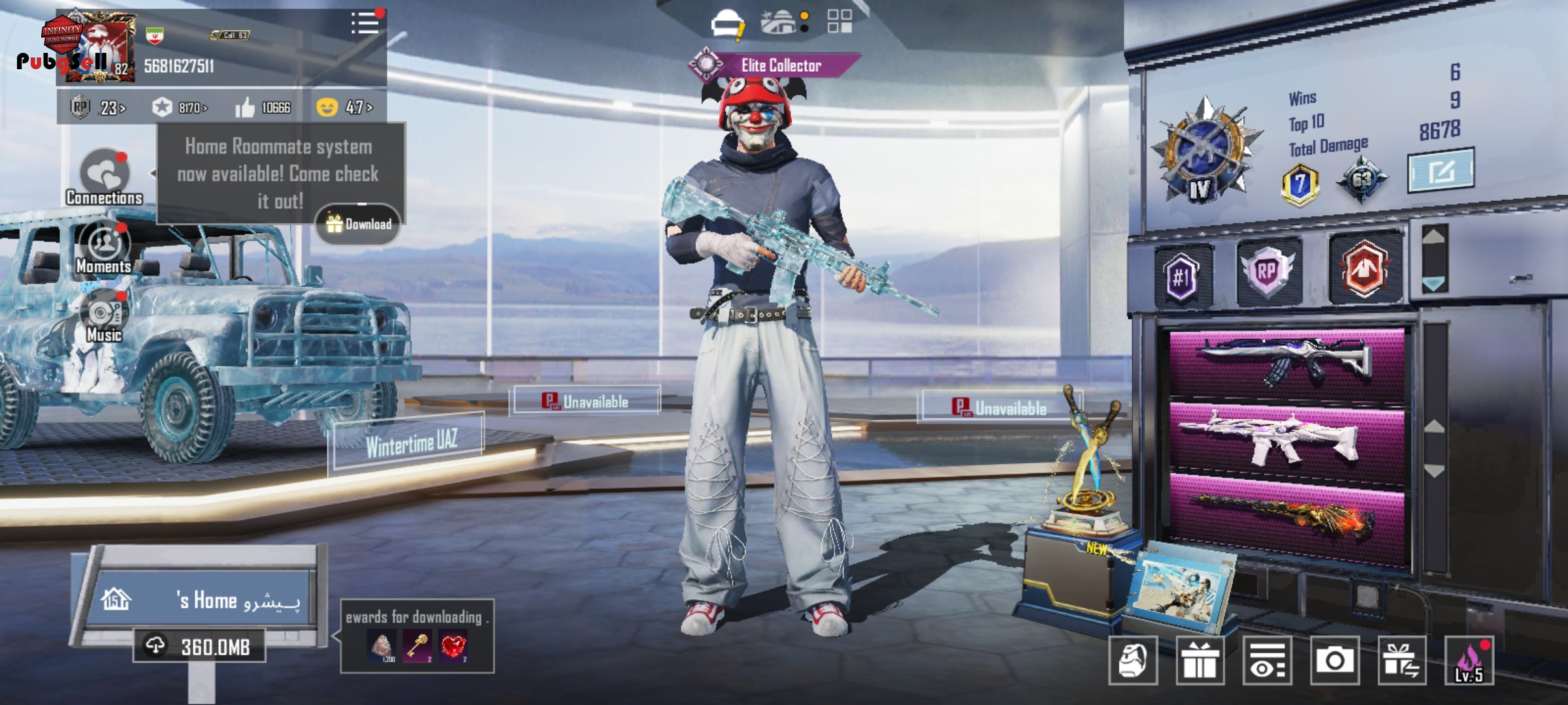 امفور یخی (مکس) ایدبل7لول(کیل مسیج) اسکارال7لول(لول3) ام هفصد یونیکورن(کیل مسیح) ام هفتصد7لول(لول1) آم جی تری(آبگریدی گردونه) 100تیر الایت(Bp)لول1 ام کا14الایت(BP)لول 1 ویکتور التیمت7لول(کیل مسیج) یو ام پی(کیل مسیح) بی پی(کیل مسیج) و 14گان دیگر که 5تاش کیل مسیج هست ایکسوتDrvaionلول یک بک بک متیک ایکسوت بک بک سیزن14 و 42بک بک دیگه هلموت میتک ایکسوت علما سیزن12 و 45هلمت دیگه لباس سیزن 12تا 17الایت رو داره ست سیزن 2کامل تمامی لباس های که از سیزن ده داخل بازی بوده رو دارههمه دنس های خفن بازی که قدیمی بودن رو دارع لباس تی دی امی خنده و لیمو و ست قدیمی بازی که شاید هر کسی نداشته باشه رو این اکانت هست یا بیمارستان ست کاپیتان و خیلی زیادتر اسماسونو نمیدونم ولی خفن تر از ایمان اندی کارلو سارا و دوتا کاراکتر دیگه بجز ویکتور رو داره که کل لباس ها و دنس هاشونو گرفتم دوتا گان لنجند که کلا کیل مسیجن و هرگان قدیمی که بگی بالای5تا اسکین داره اکانت اگه یا تی دی ام هاشو ببینی پشمات میریزه ماشین یخی سیزن 2