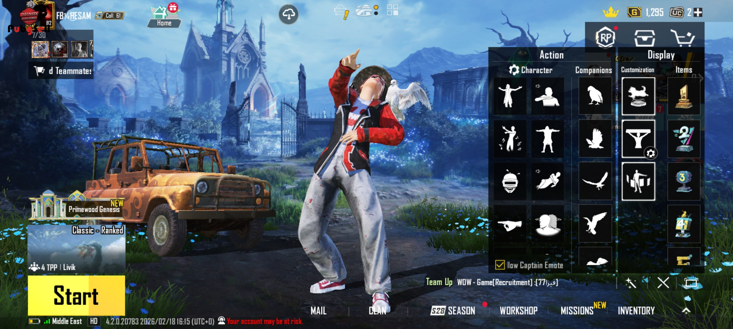 اکانت از دنس سیزن 2تا الان بازیو داره هر دنسی که بگی فیس سیزن4 ایکسوت ایدبل چیتر کش ام جی تری بی پی کیل مسیج و پنج شیش تا گان 7لول دیگه و گان های الایت اکانت قدیمه کل لباس های قدیمی رو داره لباس تی دی امی زیاد داره و قدیمی کلا اکانت قدیمی و خوبیه دوتا لابی میتک هم داره کالکشن 61هست اکانت حیوان عقاب و خرس رو داره کاراکتر اندی سارا و آنا رو داره خلاصه اکانت خیلی قدیمی و خفنه