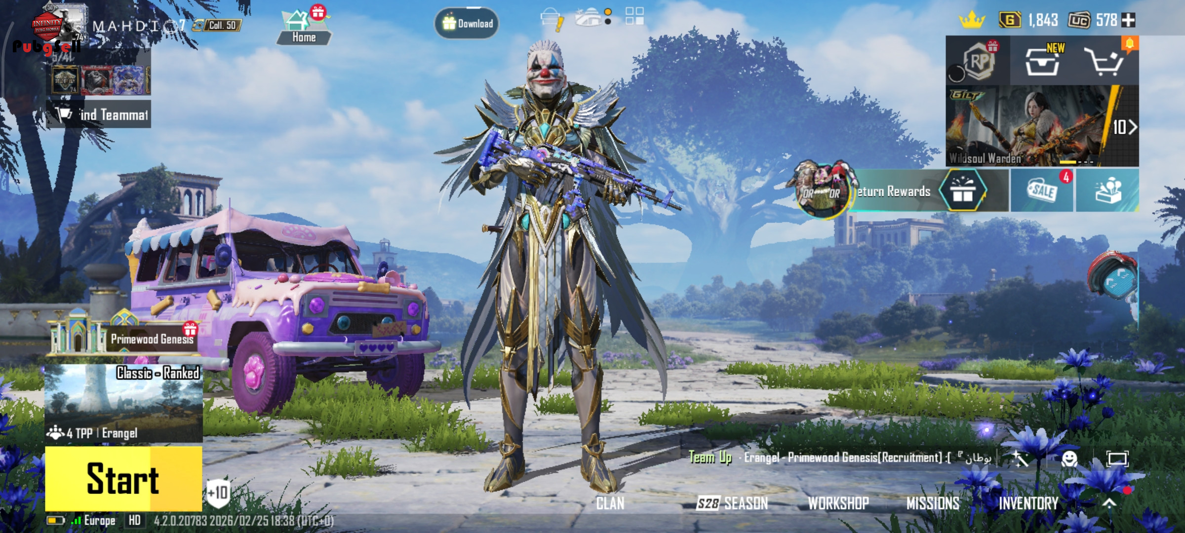 اکانت پابجی موبایل لول 74 دارای 578تا یوسی روی اکانت