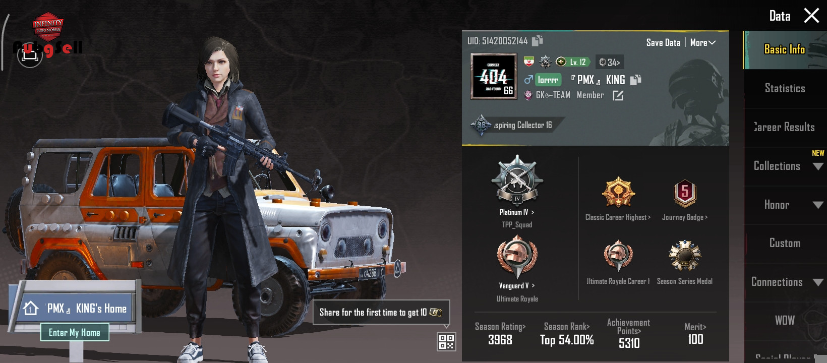 نام اکانت پابجی موبایل:PMX KING