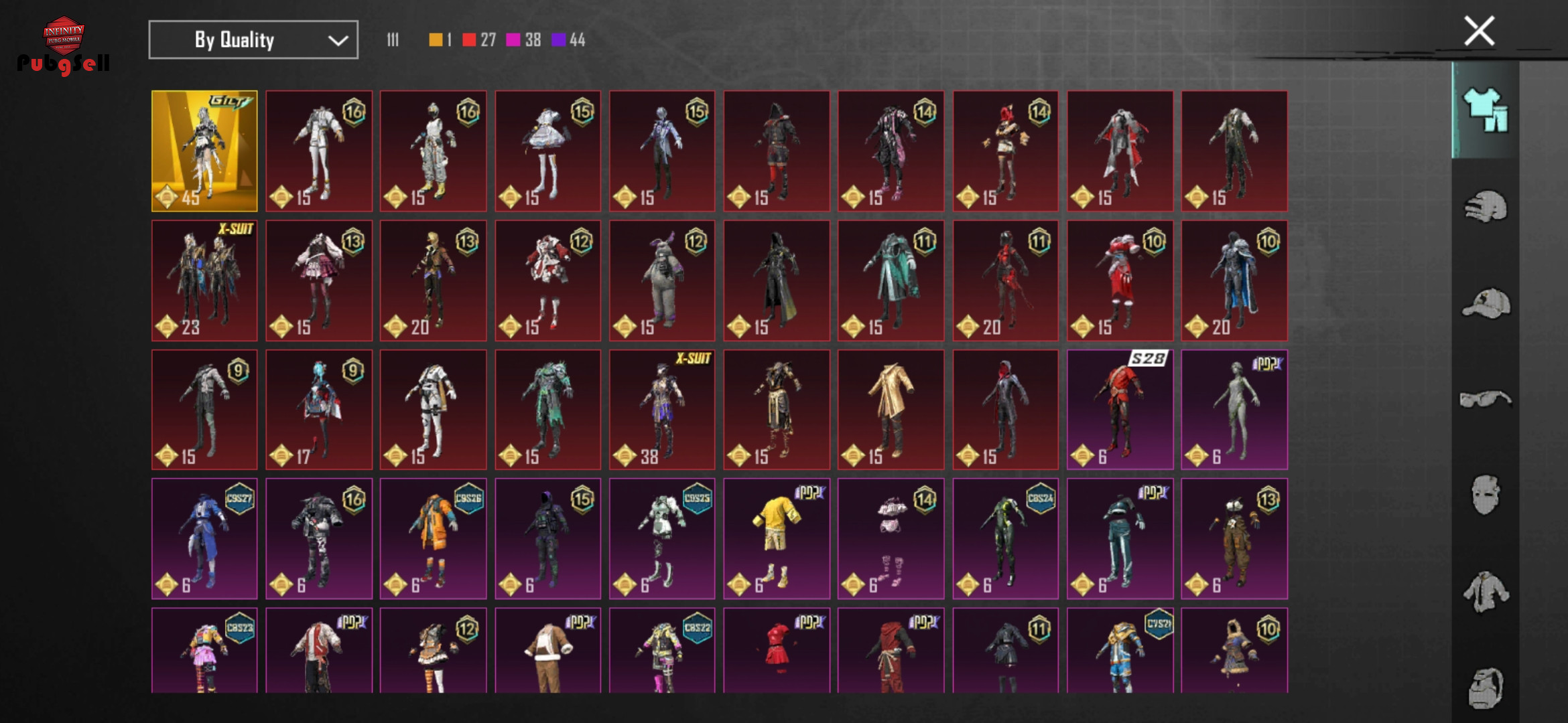 تعداد کل متیک:48 متیک و 1 آلتمیت گان های اپگریدی غیر آرپی: Valor's requiem-awm Lv1 Xsuit Scout regiment blade LV3 اتک آن تایتان Void souleater-UMP45 LV1 Xsuit Roaring immolation-m416 lv6 ultimately Abbysal howl-aug lv4 Codebreaker-akm lv1 Pharaoh's might-m24 lv1 Field commander awm lv1 ست های اپگریدی: Dravion Xsuit lv1 Golden Pharaoh Xsuit lv2 ماشین های مهم: Dodge charger SRT Hellcat Tuscan torque Enchanted pumpkin uaz lv1 Duneshine Dacia lv1 Victory rush buggy esports توضیحات بیشتر : آلتیمت macabre valentine پت گرگ چتر فرعون(آپگریدی نیست) پس زمینه متیک Eerie Mansion هلمت draconic aegis کیف متیک draconic vault هلمت galadria 16 تا گان آپگریدی ماسک merry mauler چشم بند blind noble ست متیک keenhorn Sentry ست متیک goldhorn steward ست متیک wraith lord ست متیک warrior of nut سر متیک warrior of ra ست متیک gunslinger ست متیک Golden claw Dragonborn wings glider Twilight corset glider Blackmiyst broom glider 5 تا نید آپگریدی 5 تا مولوتوف آپگریدی 2تا متریال کامل و 8 تا مینی متریال لول خانه 29 1 جم متیک فورج کامل و 28 تا مینی جم متیک فورج 21 روم کارت یک روزه و 15 روم کارت 7 روزه آیدی کارت داره 20 تا تایتل داره